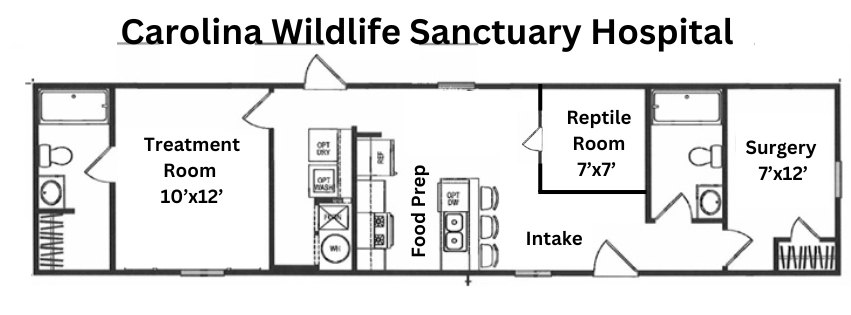 The Carolina Wildlife Sanctuary is launching a capital campaign to build a new wildlife hospital, and we need your help! Each year, our dedicated team of 15 volunteers cares for over 300 animals in a 320 sq. ft. shed with only a window unit AC, no restroom, and no indoor plumbing. Our biggest challenge is space, and we are struggling to give these animals the care they deserve.